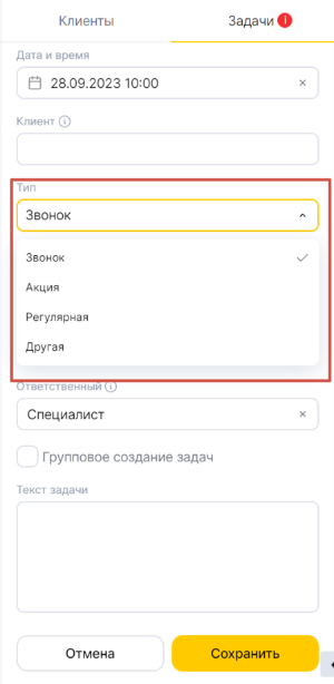 Прямо в журнале записи: задачи на пользователей как в CRM