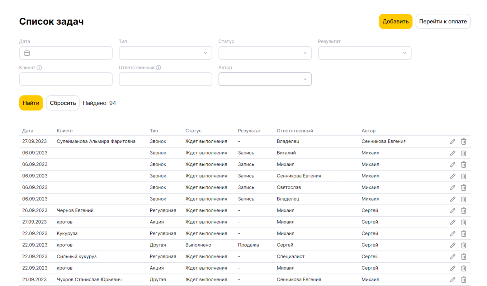 Ставите ли вы задачи администраторам, или напоминание себе, или операторам кол-центра - все задачи будут по клиентам отображаться внутри вашей системы